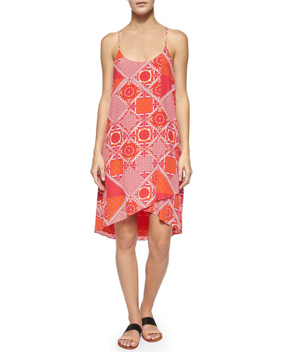 Joie's "Ondria Dress" in Paradise Red gives the perfect POP of colour! Featuring a bold scarf pattern in varying shades of red, orange, pink, and white, this dress also boasts adjustable spaghetti straps and an asymmetrical hem. Pair with a cropped denim jacket and flip-flops for an everyday, casual look, or, with a leather jacket and ankle booties for an edgier option.